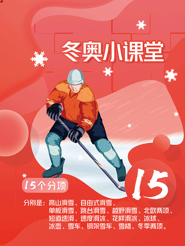 本届冬奥会共设7个大项,15个分项,109个小项。除了传统比赛,北京冬奥会还新增了7个小项,分别是:女子单人雪车、短道速滑混合团体接力、跳台滑雪混合团体、男子自由式滑雪大跳台、女子自由式滑雪大跳台、自由式滑雪空中技巧混合团体、单板滑雪障碍追逐混合团体。同时女性运动员的参赛比例进一步提高,参赛运动员的男女比例更趋于平衡,届时赛事将产生109枚金牌。