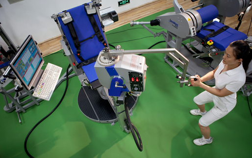 通过等速测试系统将下肢及骨盆固定,测定腰背屈肌和伸肌肌力