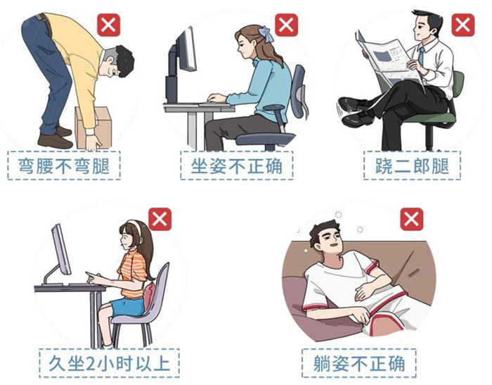 端正坐姿,抬头挺胸,勿弯腰驼背,尽量避免长时间翘二郎腿等不良姿势。